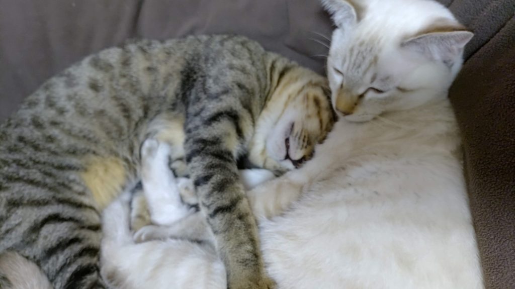 リンは私の太腿の間に、ナナは私の足元に。
