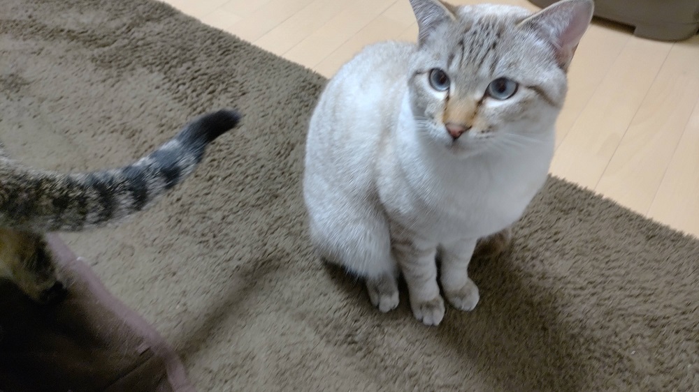 ちゃんと先に餌をあげてから人間の食事をしているのに、自分のご飯を終えてからじっと見つめてくる……