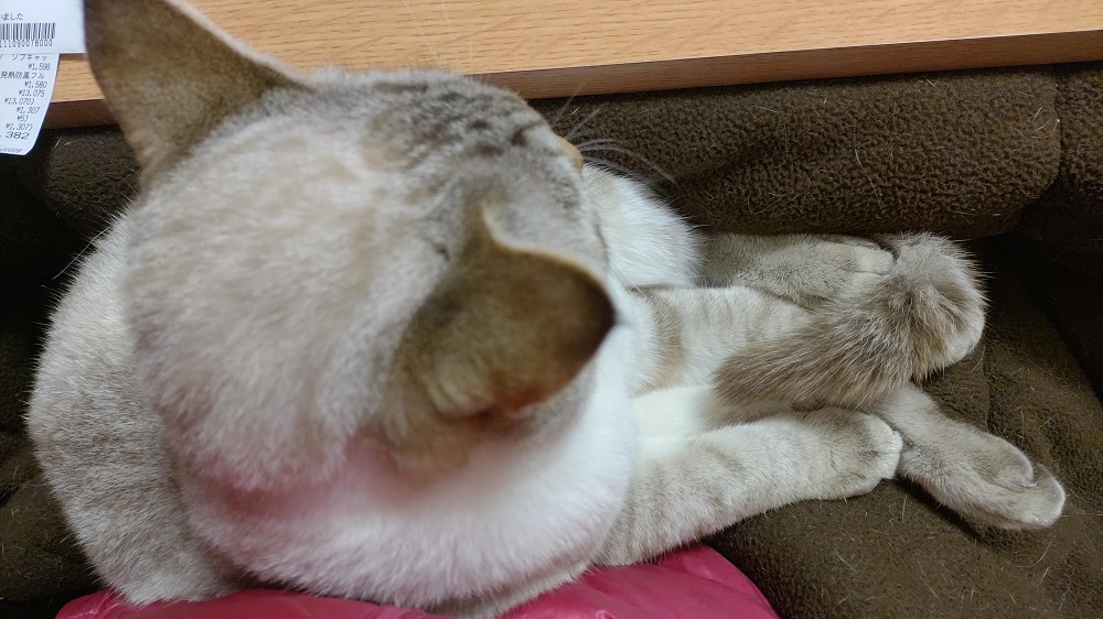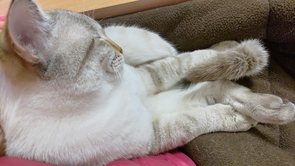 嫌がられることも多いけど、今日はそのまま私の脚の上で寝てた。